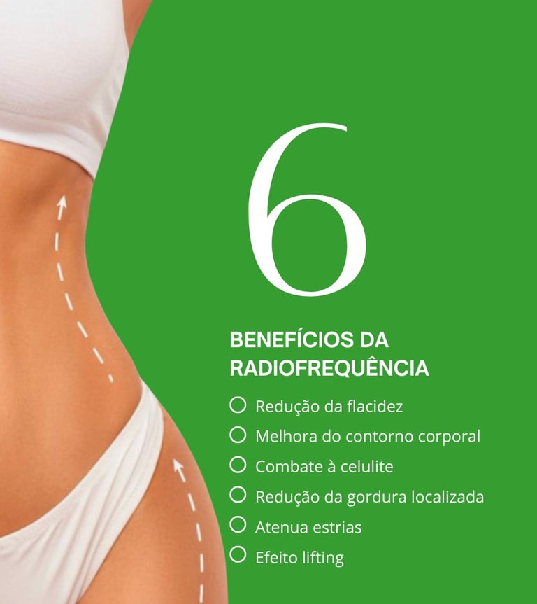 A radiofrequência corporal é um tratamento estético não invasivo que utiliza ondas eletromagnéticas de alta frequência para aquecer as camadas profundas da pele, promovendo a produção de colágeno e elastina. O calor gerado controlado estimula a regeneração celular, melhora a firmeza, elasticidade e textura da pele, além de atuar na redução de flacidez e celulite.